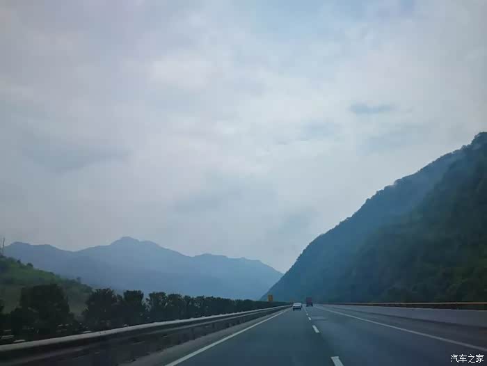 秦岭植被茂盛,山上郁郁葱葱,基本看不到裸露的山坡,高速公路通过秦岭,一路都是桥与隧洞。