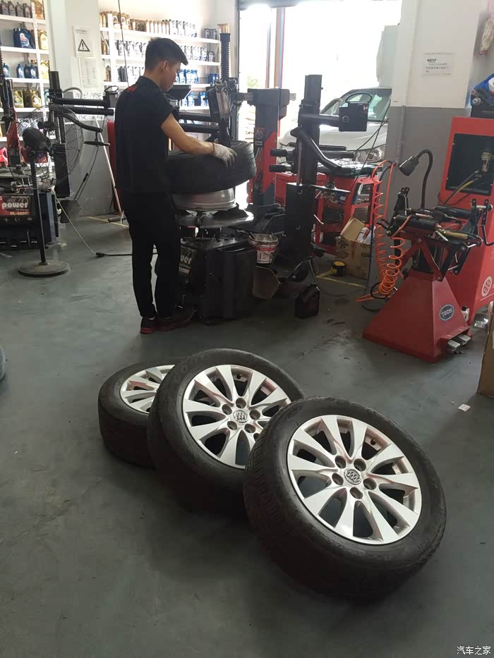 由于是工作日,店里工位还是比较多的,核对过订单后,开始拆卸轮胎。