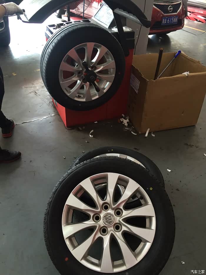 挑了一条唯一没有补过的做备胎,上次更换下来的有点小变形的轮毂可以用上了。