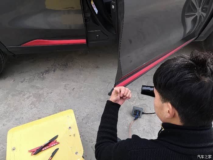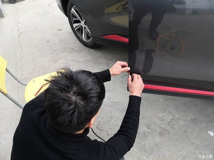 天气冷,用吹风机把防撞条后面的胶吹热一下,粘的更牢固些!