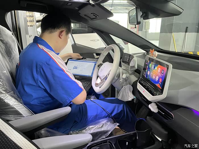 大概一周左右后等到了售后的消息说车车修好了,我去的还比较早还看见师傅在做最后的检查,正插上电脑在检查车机
