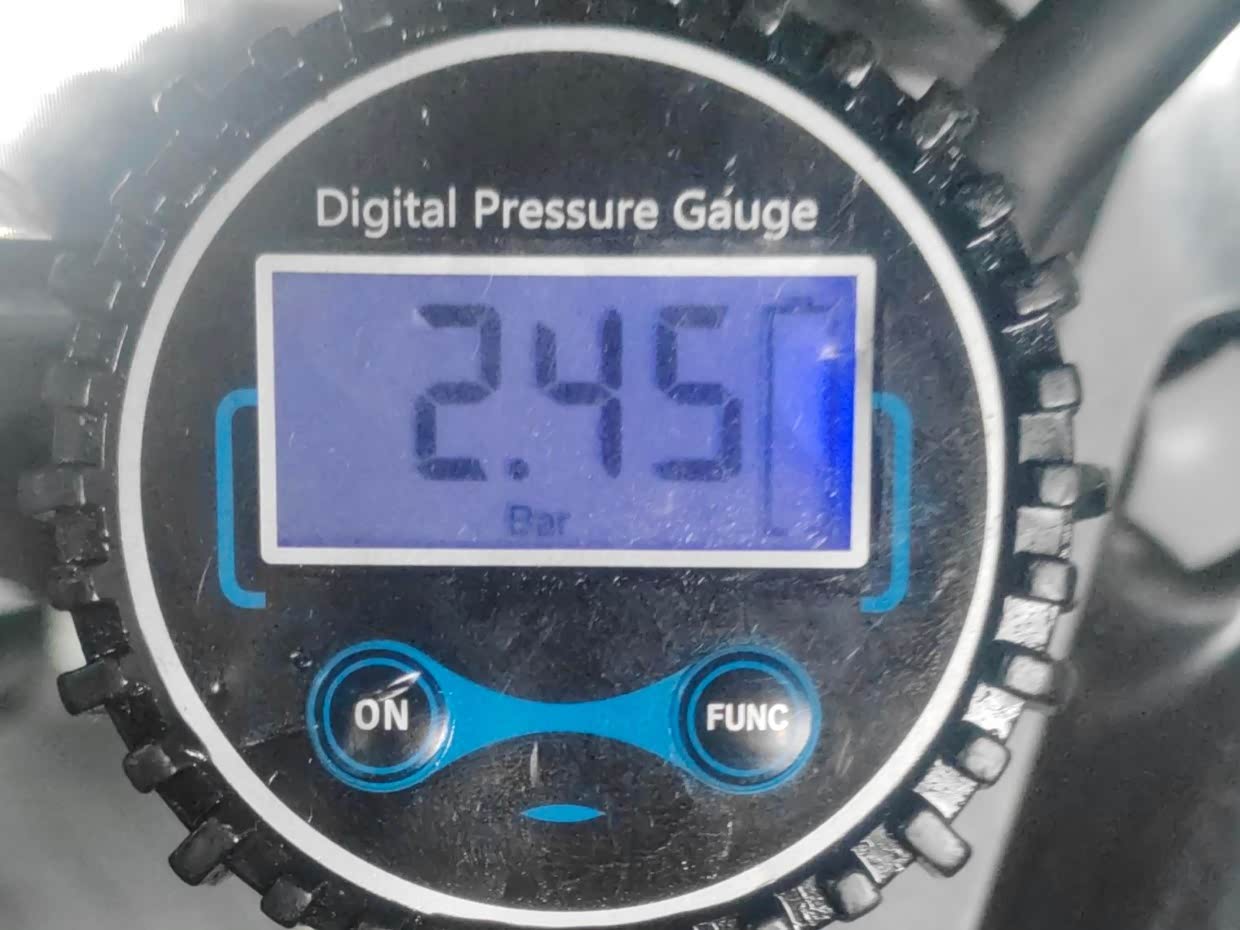 接着检查轮胎胎压。胎压稍低,师傅把胎压加到245。