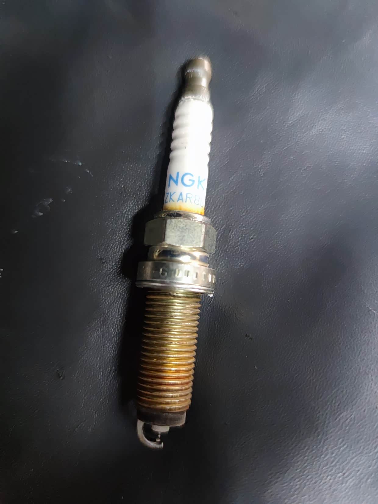 接着,师傅取出一个火花塞,他说螺丝旁边有点变黄,要更换,不然油耗会上升。我没同意。我的大狗点火正常,没 有顿挫感。经验告诉我暂时不需要更换。