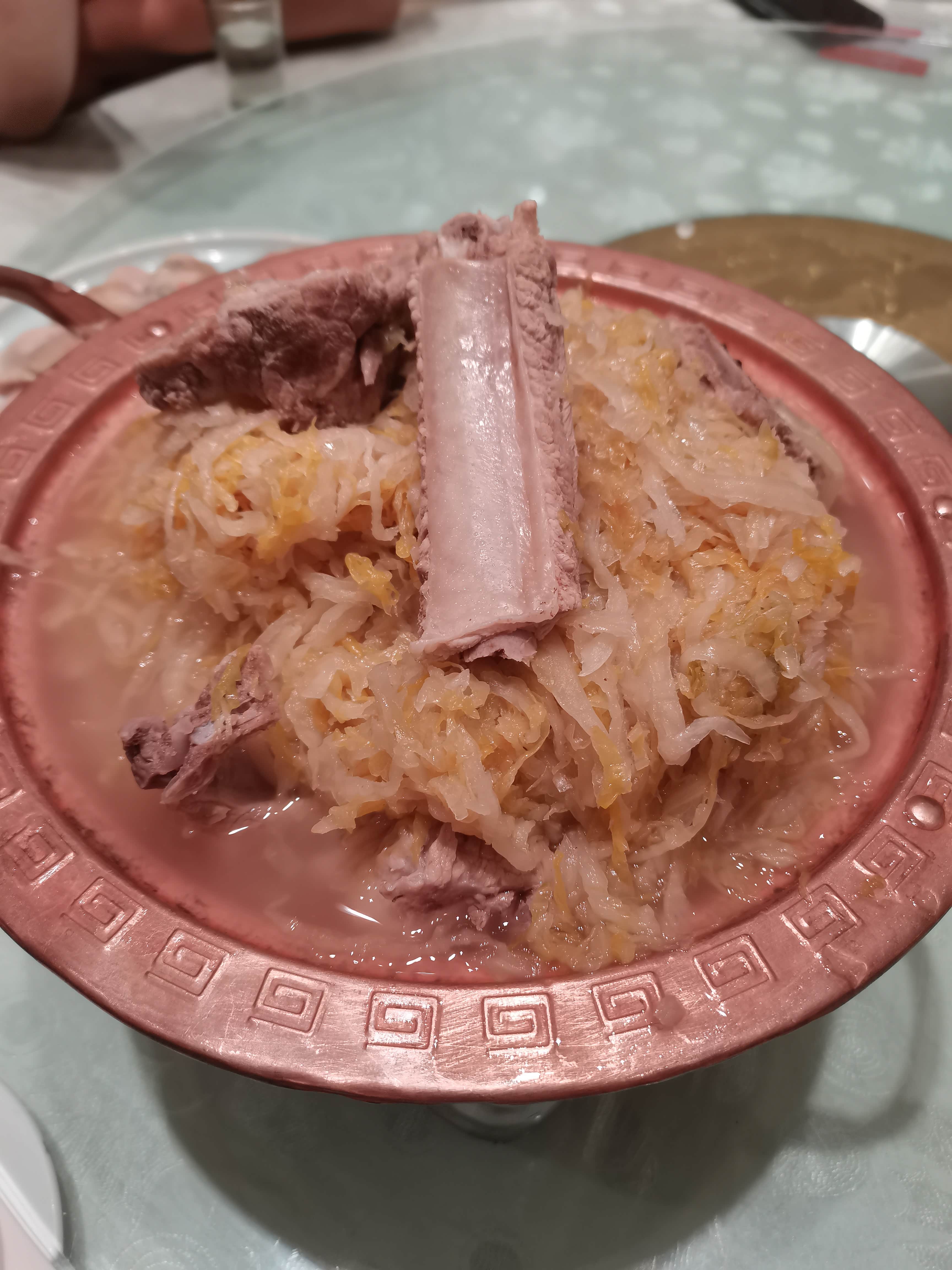 酸菜锅每桌必点,东北名菜,酸菜!酸爽鲜香的酸菜搭配鲜嫩脱骨的排骨,碰撞出层次丰富的绝妙滋味。