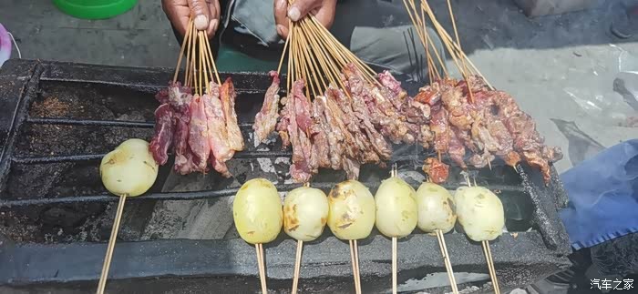 而且这里的烤牛肉,烤羊肉和土豆特别好吃,牛肉羊肉是现切的,巴士的很,4元一串,绝对的良心价。