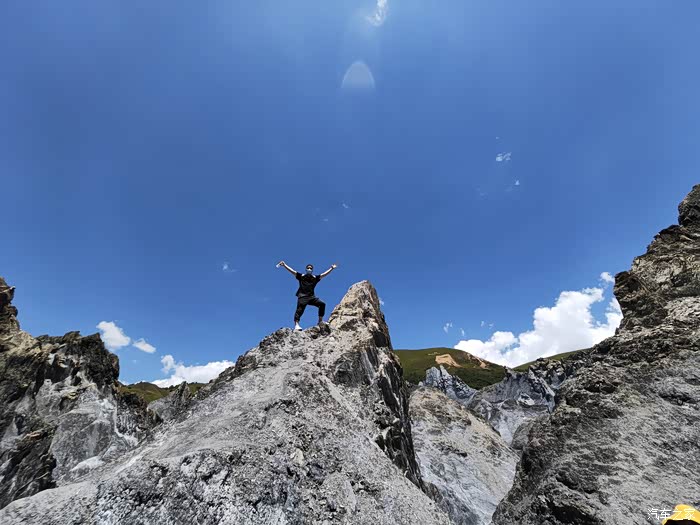 一路行程,忘记给蓝胖子拍照,这个是同行人拍的唯一一张,本人正在旁边准备换裤子去溪边扎营。