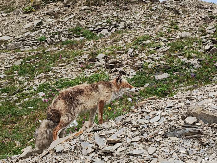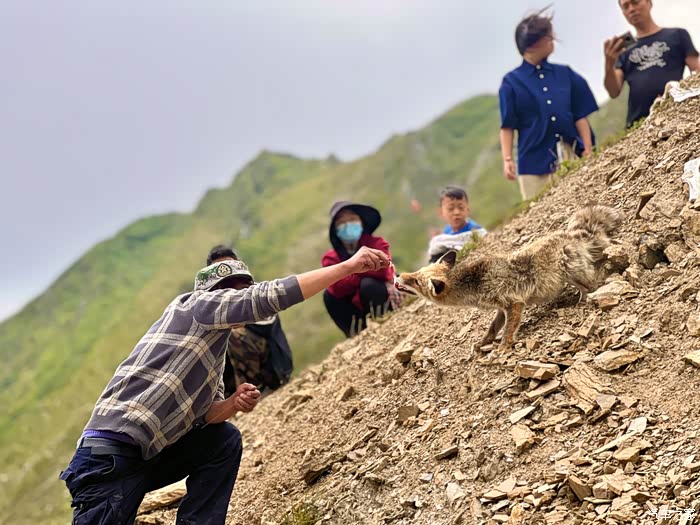 在夹金山顶垭口看到了狐狸,藏民还在投喂