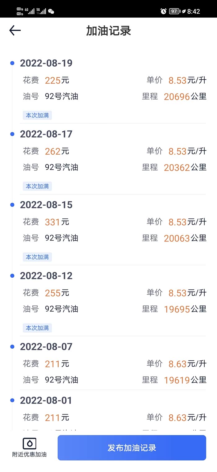 说一下油耗,8.12出发前一天加满,13号没有动车,14号出发。