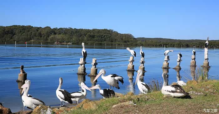 第7天 Greenwell Point的南岸度假村位于小镇的最东端,面朝大海,环境宜人。早晨,从小屋客厅的窗户向外望去就能看见漂亮的日出。小屋外是很大的一片草地,小镇的居民熙熙攘攘,牵着手或溜着狗,闲庭信步,沐浴清晨的阳光,好不自在。附近的那个小码头早上会迎来许多满载而归的渔船。有两群鹈鹕(不确定是不是鹈鹕)被码头淡淡的鱼腥味吸引而来,栖息在码头附近的水岸和较远处的一片石滩上。鹈鹕与附近的居民看来一直和睦相处,我们靠近没有惊着他们,依然自由自在地看着风景。小屋前的大片草地是人们休闲和小孩娱乐的场所。爸爸妈妈散着步,Vilu在游乐设施上玩的不亦乐乎。直到临近晌午,我们才退房,向悉尼方向前行。