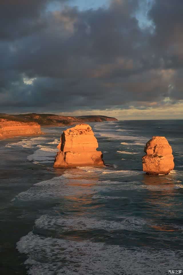 从吉布森阶梯开始,沿大洋路有好长一段绚丽的海岸线。父亲从事了40多年的地质学研究,对南澳大利亚的前寒武纪地质遗迹和西澳珀斯的现代叠层石念念不忘,虽是第一次来到大洋路,却一眼看穿了这段海岸的地质成因。澳洲是一块古老而相对稳定的大陆,亿万年来,年复一年的海浪侵蚀,雕刻出了一幅幅壮丽的海岸线。离开吉布森阶梯,我们又在坎贝尔港国家公园那边闲逛了一个下午后,最后回到了十二门徒国家公园,迎着海风,送走了一轮日落。