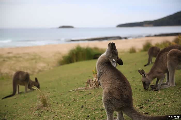 Pebbly沙滩,我们第一次与野生的袋鼠群走得这么近