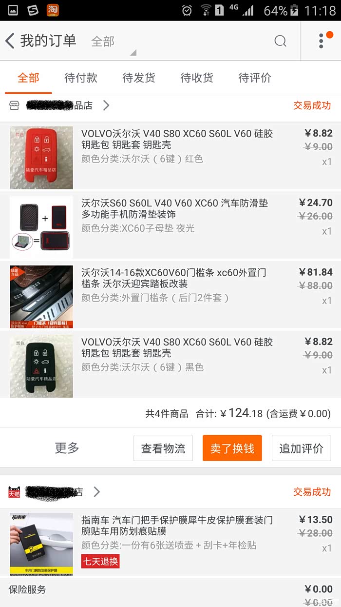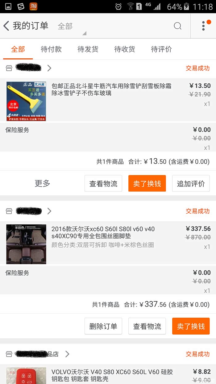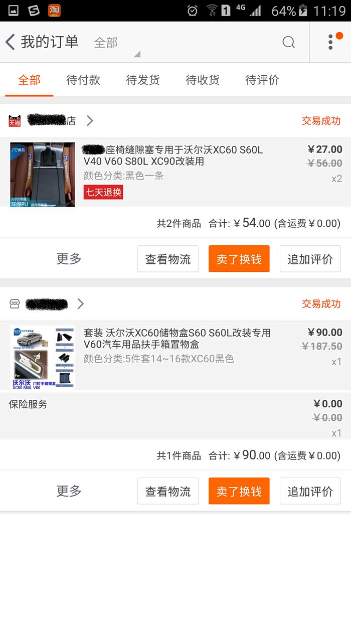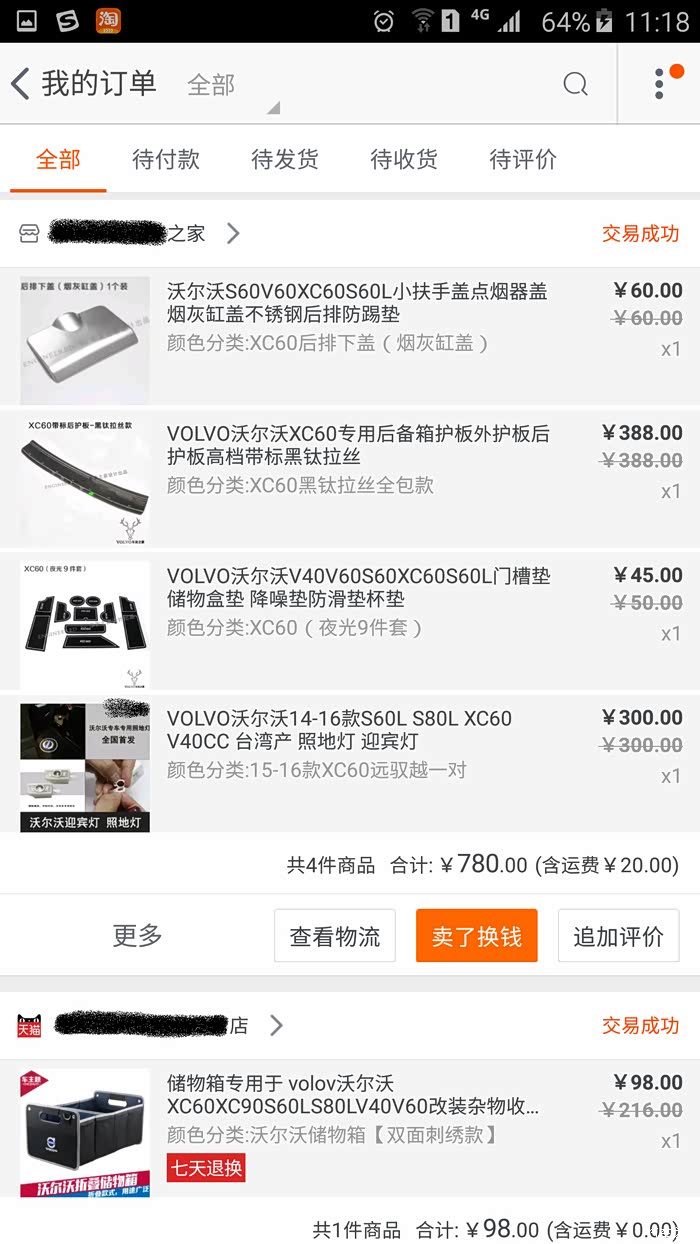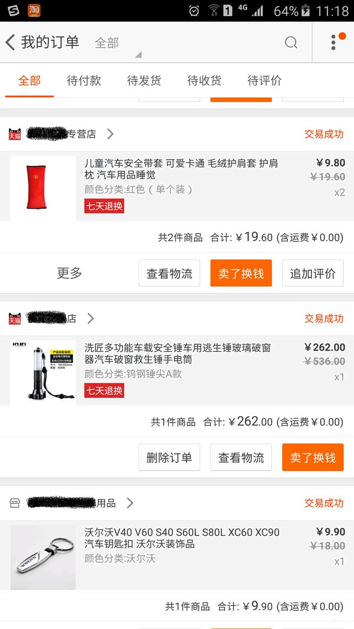 以下就是自交钱订车开始前后陆续奋战在某宝的战绩,不看不知道,一看也进去不少银子了~就拿那个带LOGO的迎宾落地灯来说吧,等我装完了,才又发现还有比我买的这个便宜100的