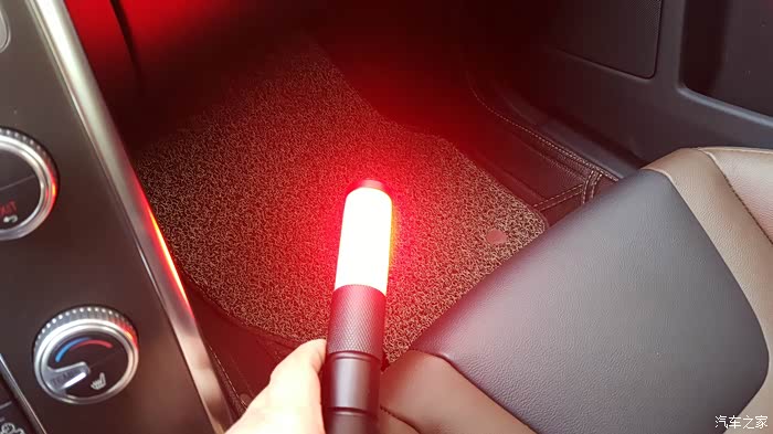 门再推开一点,越来越大,照到地上的直径大约有个300-400mm的样子。这里需要提醒下选装的车友,一定要先核对自己的车型,前车门如果有迎宾落地灯,即可直接更换,如果前门没有这个灯原则上也是可以加装的,不过就是要拆开走线什么的(三思啊!)