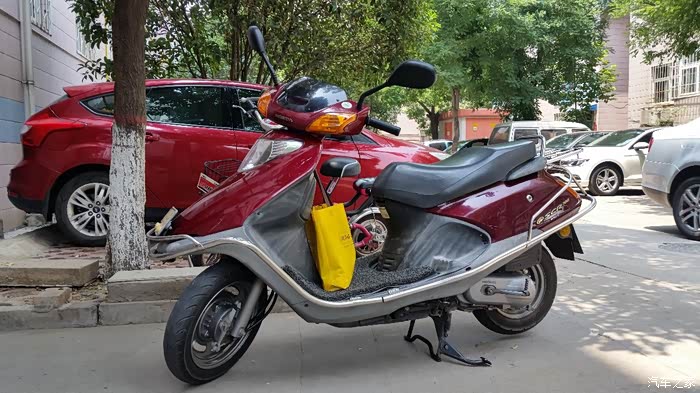 保养车时剩了一点汽车机油,大众4S店的5W-30,4s店说是全合成,其实是半合成的。闲来无事,想想摩托车该换机油了。便骑车去了修车铺,借用了一下老板的扳手。上次换机油老板把螺丝拧的太紧,费了老大劲,手也挂烂了,负伤,终于是把螺丝拧掉。板着车子把油放干净,最后把自己保养车时剩余的一点5W-30合成机油给换到摩托车里了。