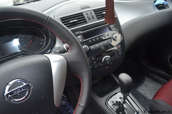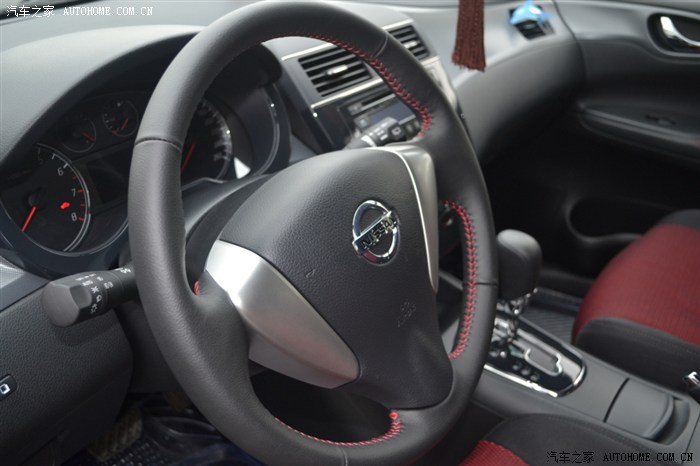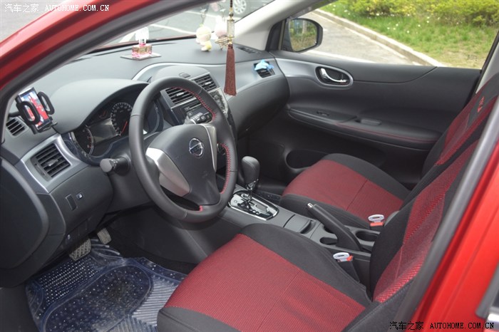 驾驶舱的样子,空间足够了,注意看方向盘上的红线处理,日产还是注意细节的,很有运动的感觉