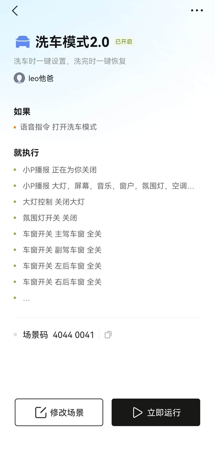 这次是朋友组织的聚会,我们只负责吃,就无需准备什么,只要带上嘴就行了。在等待的过程中跟大家分享一下小鹏G9的一个有意思的功能“智慧场景”,以前从来没用过,也是最近刚发现的。就是在这里可以设置很多有趣的使用场景,包括语音控制等。比如: