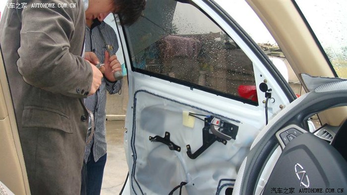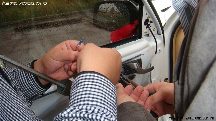 下面是第一天的照片之装了驾驶室的门 因为以前没弄过加上自己的新车下手不敢太狠而且是雨中作业奋战了3个小时终于1扇门的任务完成 五版看在这份上不射是不行哦
