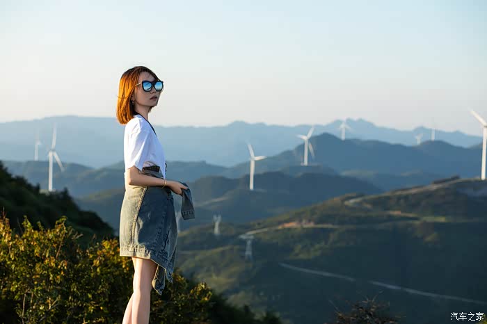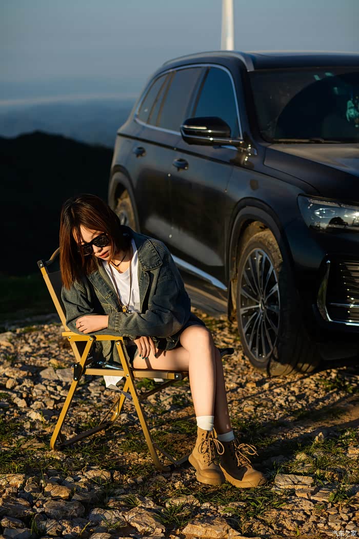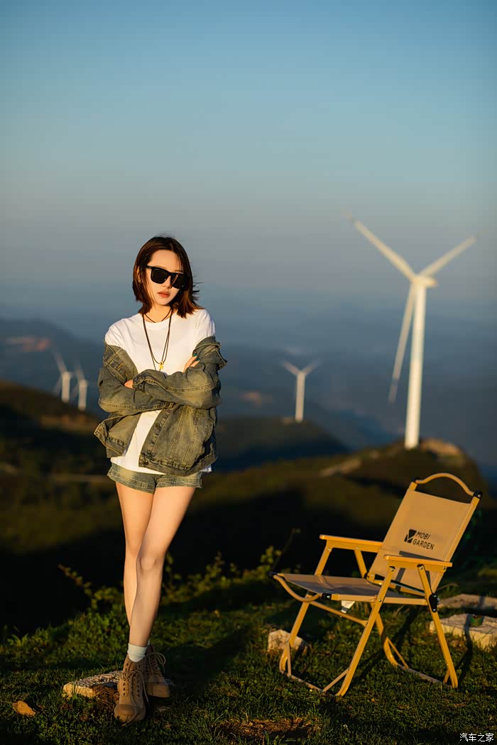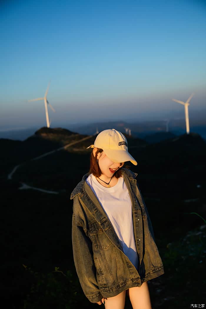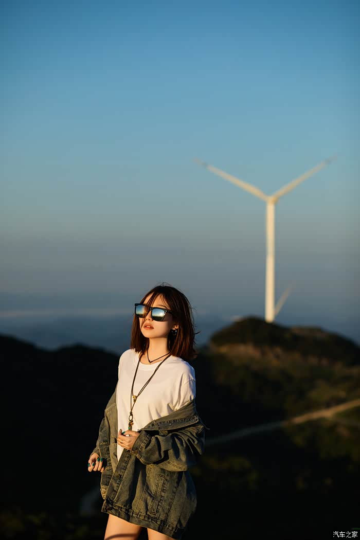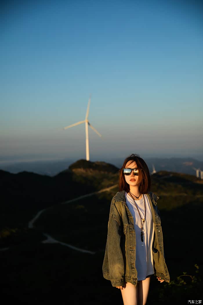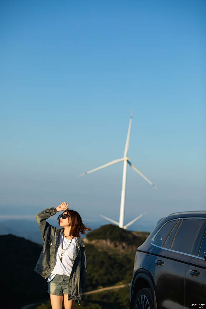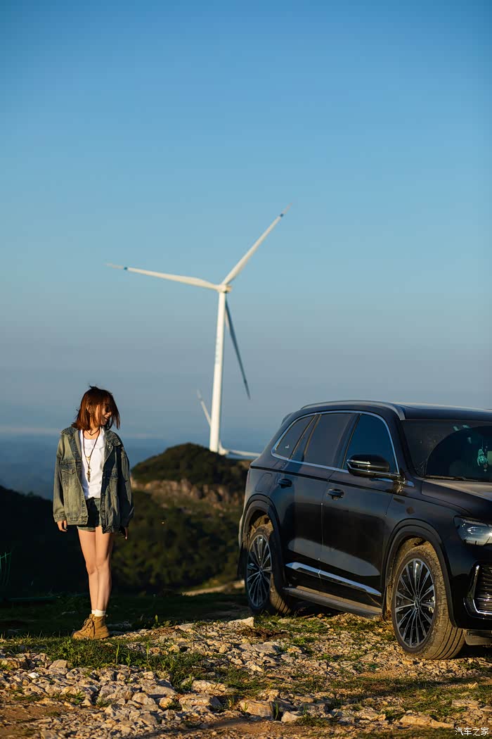 轮毂沾着盘山路的泥点,像给这台城市SUV别上了枚野性的勋章。她踩着马丁靴绕到车头,抬手挡住斜射的阳光——远处的风机在草坡上列队,叶片转动的弧度与车身腰线奇妙呼应,仿佛钢铁与自然在这一刻达成了默契。