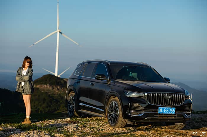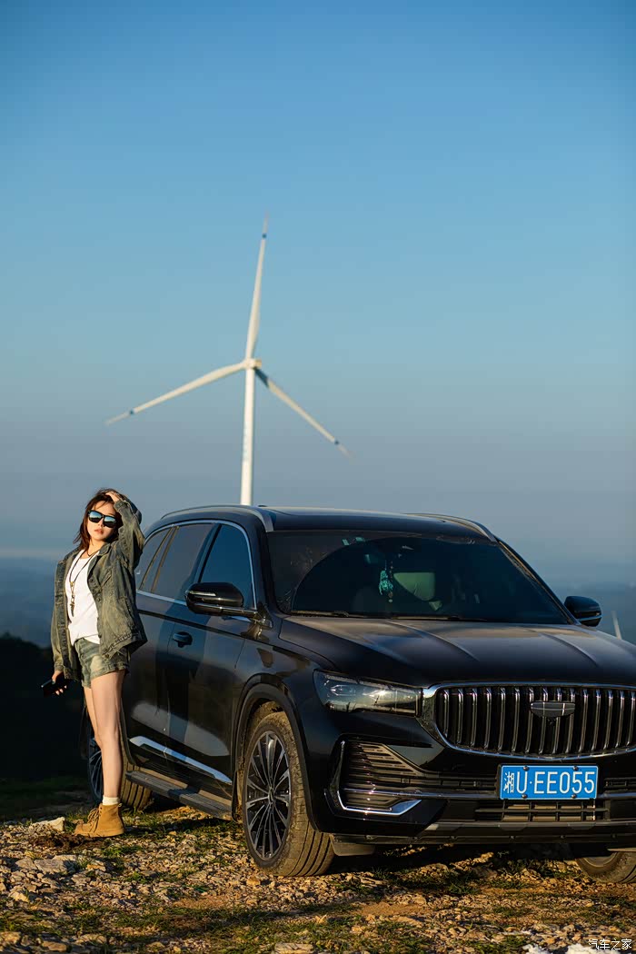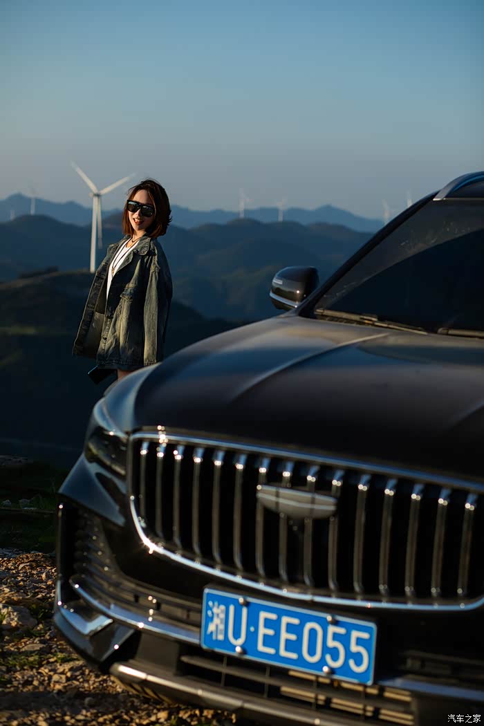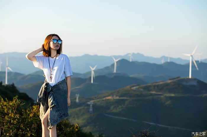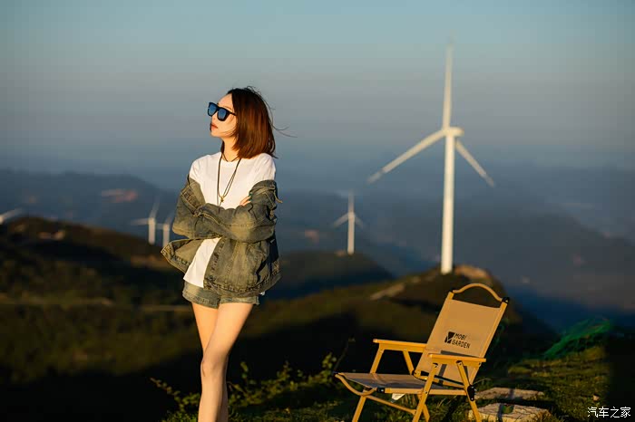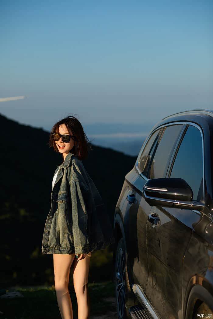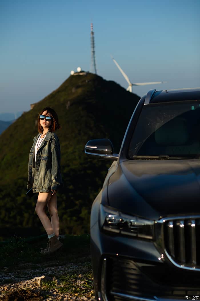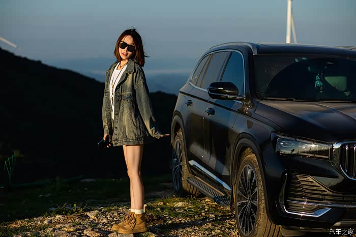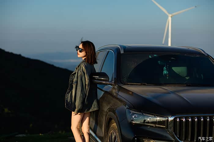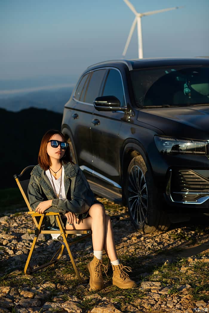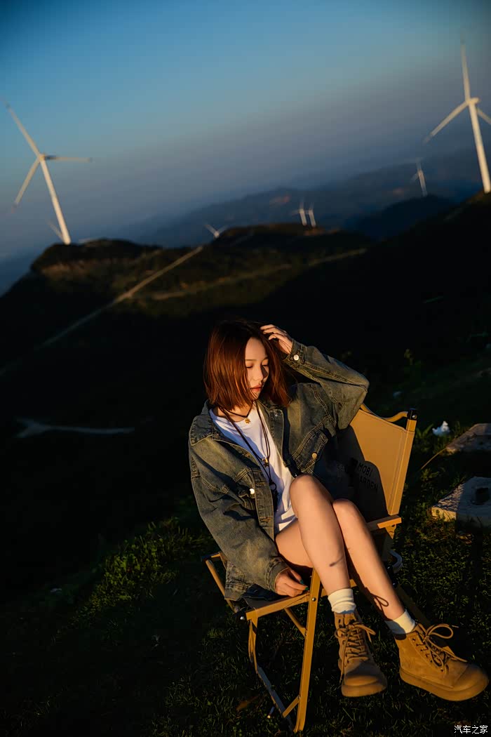 轮毂沾着盘山路的泥点,像给这台城市SUV别上了枚野性的勋章。她踩着马丁靴绕到车头,抬手挡住斜射的阳光——远处的风机在草坡上列队,叶片转动的弧度与车身腰线奇妙呼应,仿佛钢铁与自然在这一刻达成了默契。