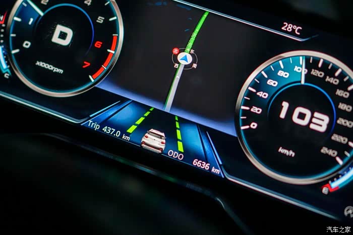 因为大清早的广州不塞车,所以很快就到了高速。领界s这个全液晶仪表盘了,路线能够投映过来,这样我跑高速时就不用低头看中控屏幕了,很方便呦。