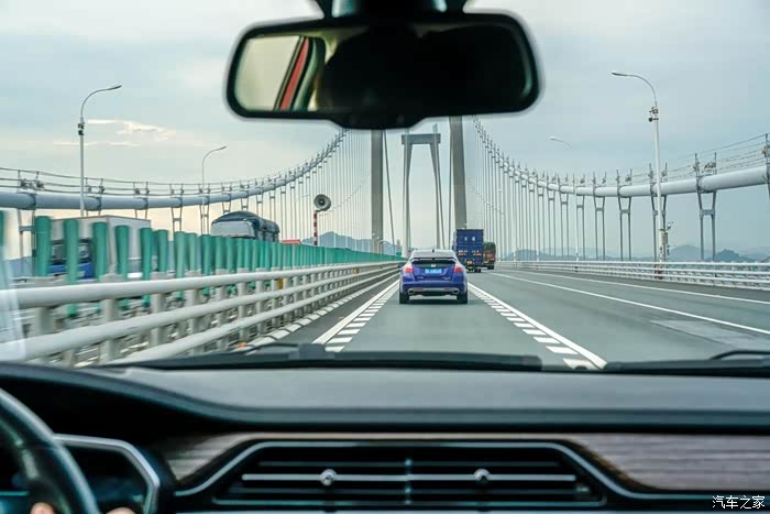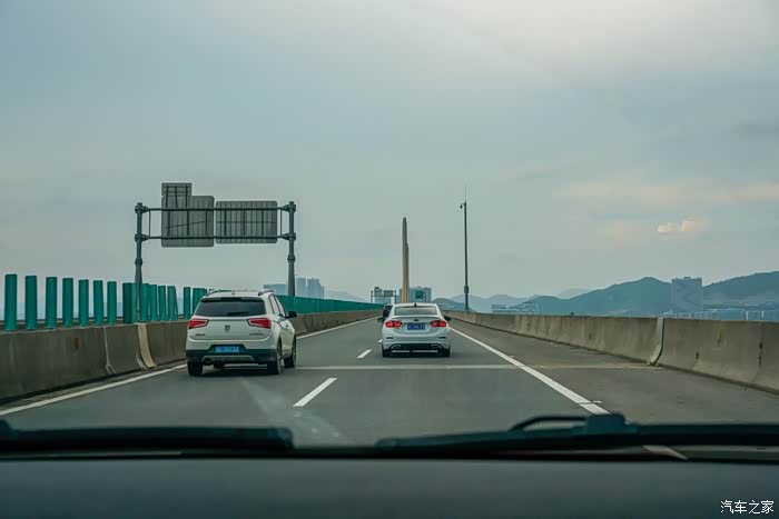 已是午后,天空不作美,有点暗沉,跨海大桥上车流较少,在跨海大桥上,先给爱车来几张游客照。
