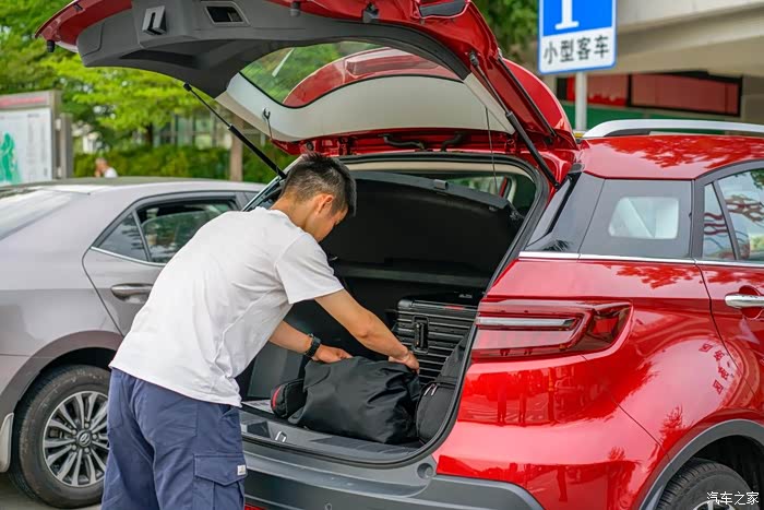 再收拾一下后尾箱的行李,因为是两天一夜的行程,所以没有带太多行李,人手一个包,后备箱位置还只放了不到一半。