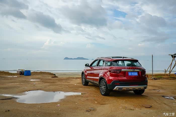 路边发现一块沙地,果断停车,让爱车感受一下大海的味道。