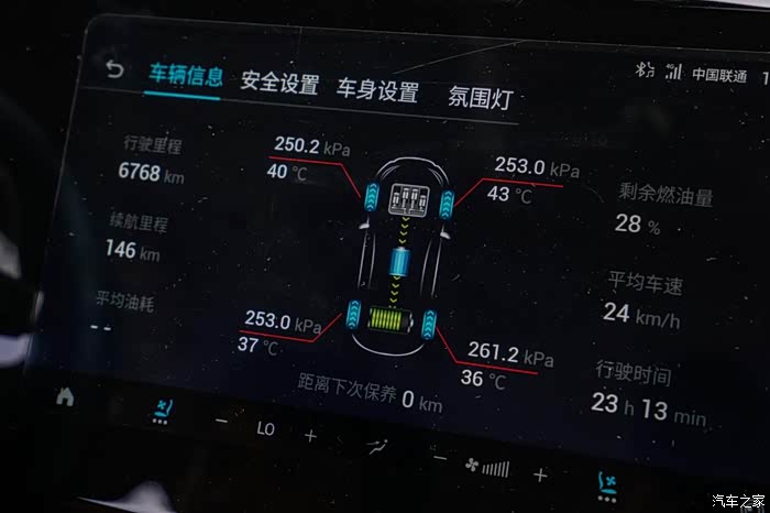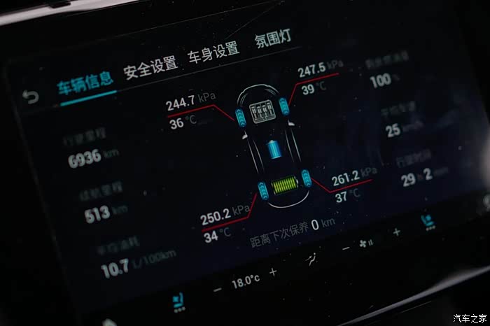 确保了发动机舱、轮胎等都正常后,回到车上,启动车辆查看胎压、胎温,一切正常,马上出发。