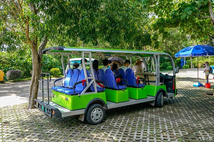 买完票来到进闸机的左手边,便可以看到这些电车停在那里,认准车头海龟湾的标志,坐它就对了!