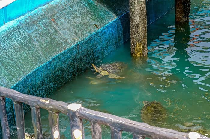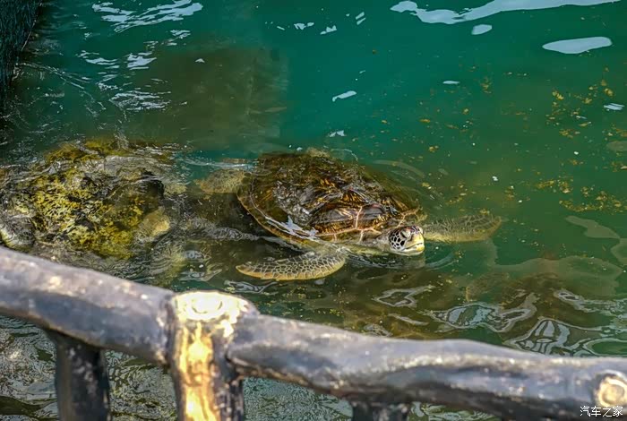 上到海龟馆的二楼,看到了今天的主角——海龟。看他们在水里游来游去,加上这炎热的天气,让我有了跟他们一起同游的想法。
