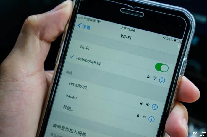 启动完车子习惯性的登陆车载微信,但是发现手机居然没有网络,果断打开爱车的热点,领界S这时候居然还真的有信号,太给力了。