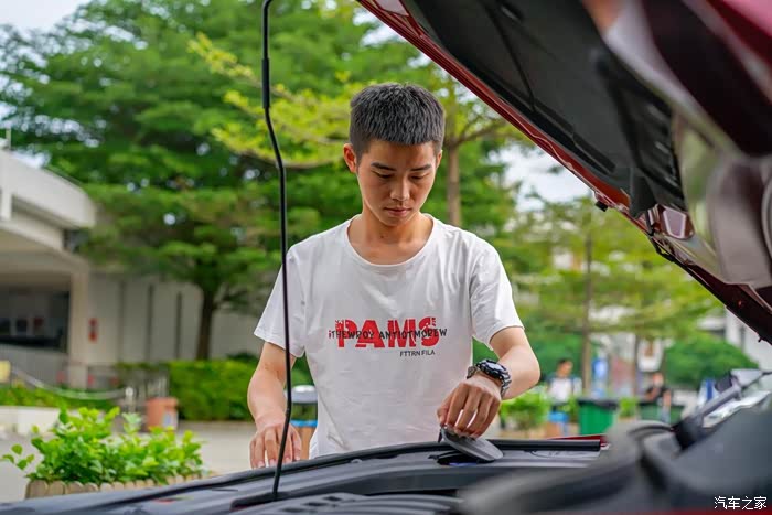 加满油之后先是检查了发动机舱的状况。