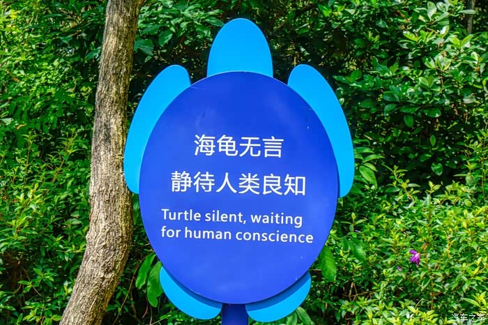 游玩一圈,返回停车场的路上看到了许多海龟形状的装饰物和保护海龟的标语。