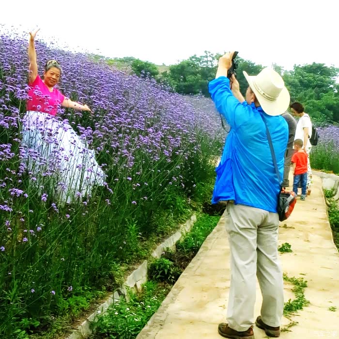 薰衣草的花语是“等待爱情”,紫蓝的薰衣草,往往与浪漫的爱情是分不开的。当恋人置身在薰衣草田中,风吹起时,大自然暖紫色的海浪,一种唯美的蛊惑,好像时间都为她们俩停顿了,无尽的紫色铺洒在天地之间,呼吸着催情的花香,他们在感受最放肆的浪漫。这一刻我非常羡慕他们俩,旁若无人地沉侵在甜蜜之中.