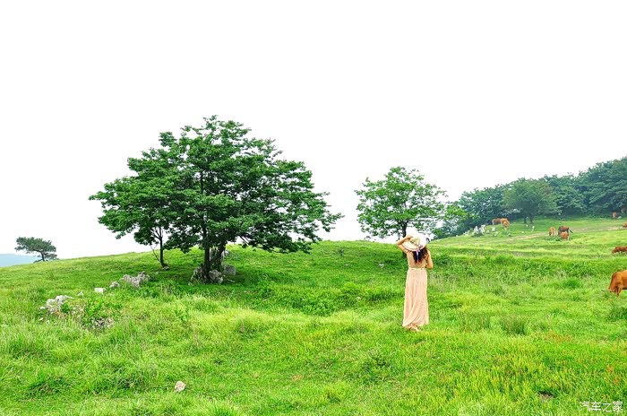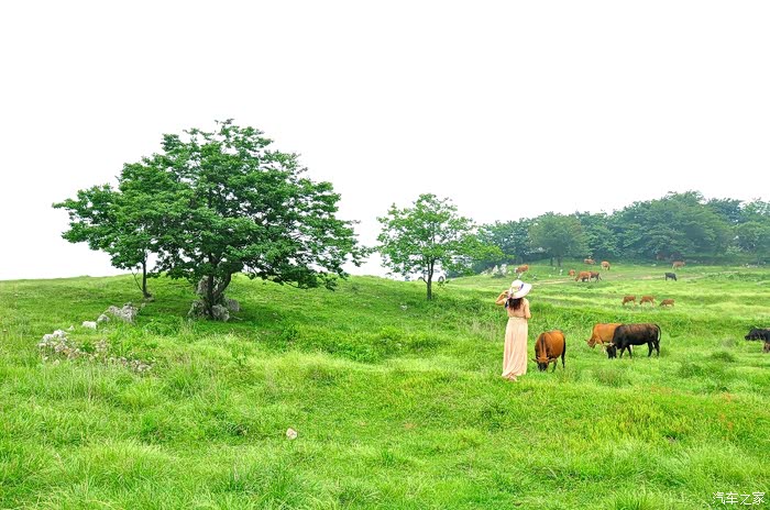 两边是郁郁葱葱的小树林,中间是一片油绿的草甸,绿草如茵,有三三两两的牛马和羊群在悠闲地吃草,牧羊人在低头独自玩手机,真是一派安宁祥和的景象。