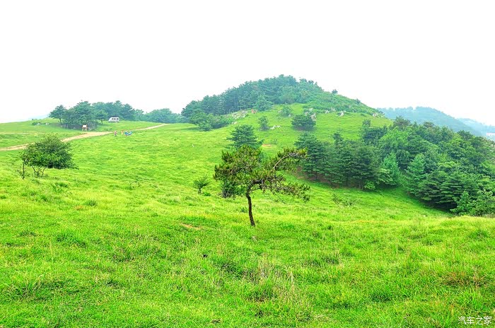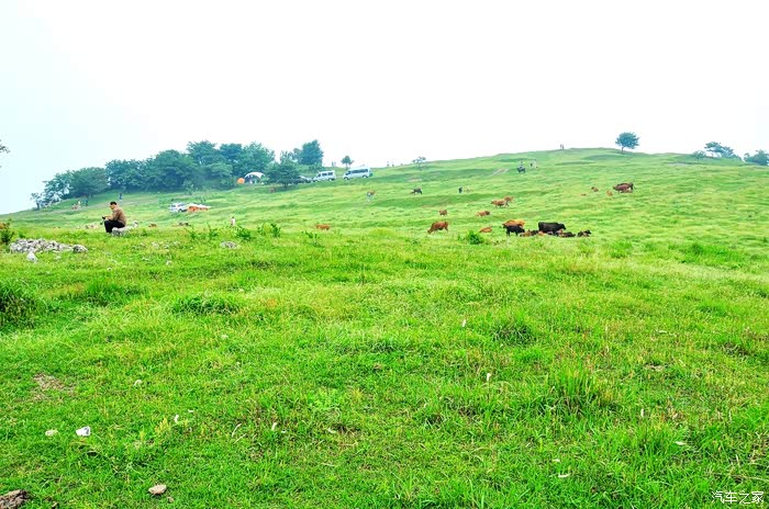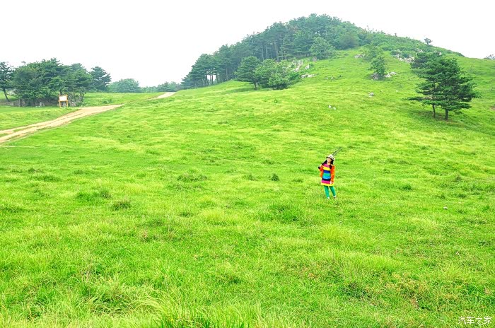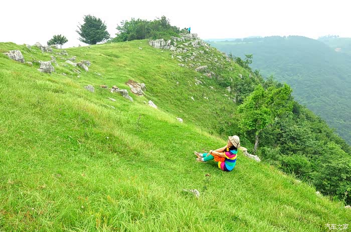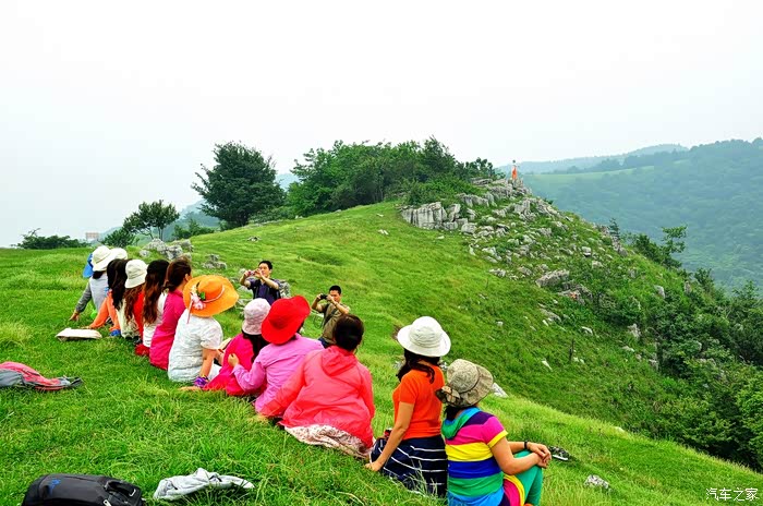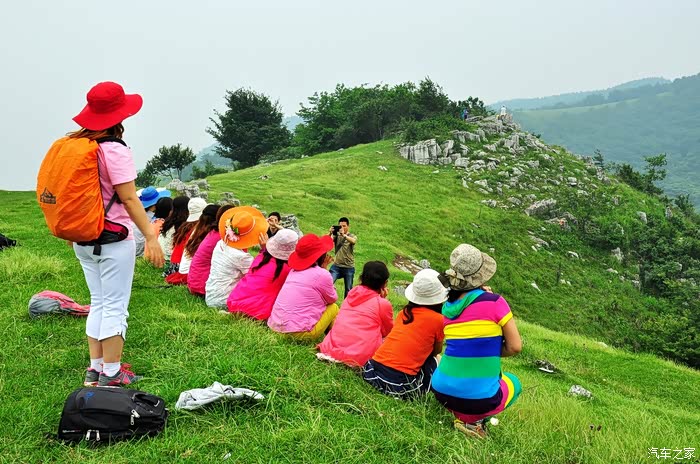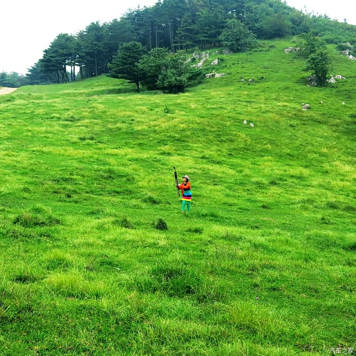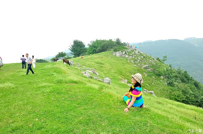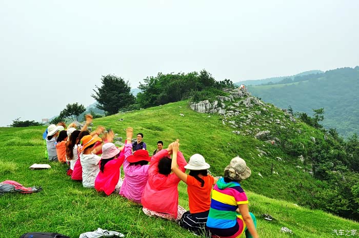 山顶地势平坦,大片绿茵茵的草地,此时此刻,确有心旷神怡的感觉。看着远方的连绵的山峰,心情格外舒畅,说不出的兴奋和激情,众人在跳跃、在呼喊,回声在山间此起彼伏…