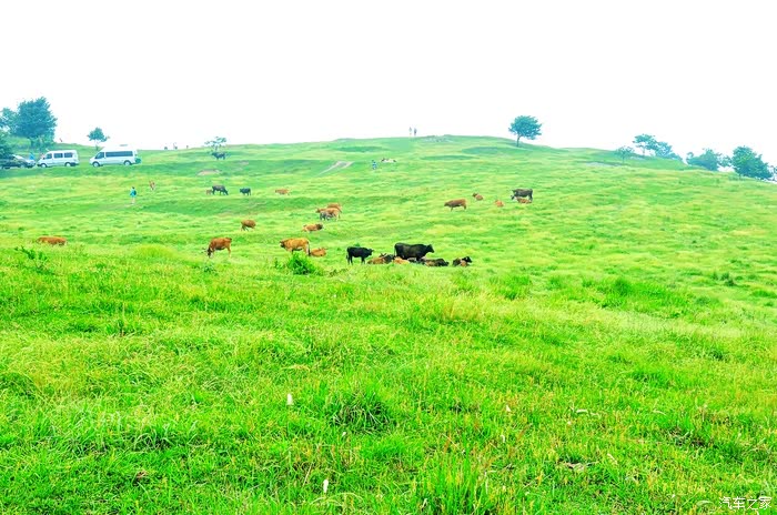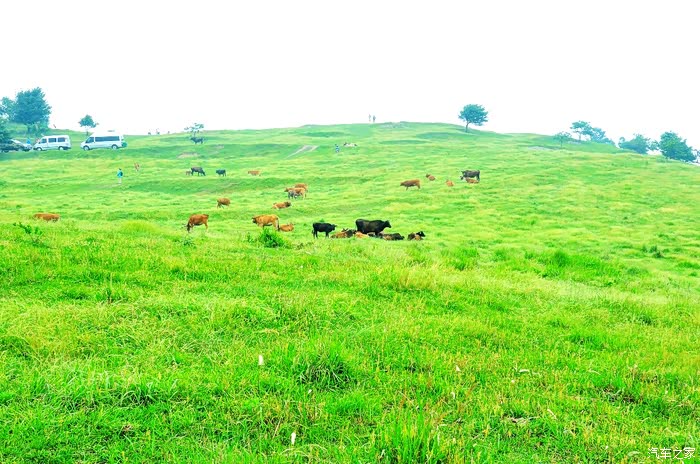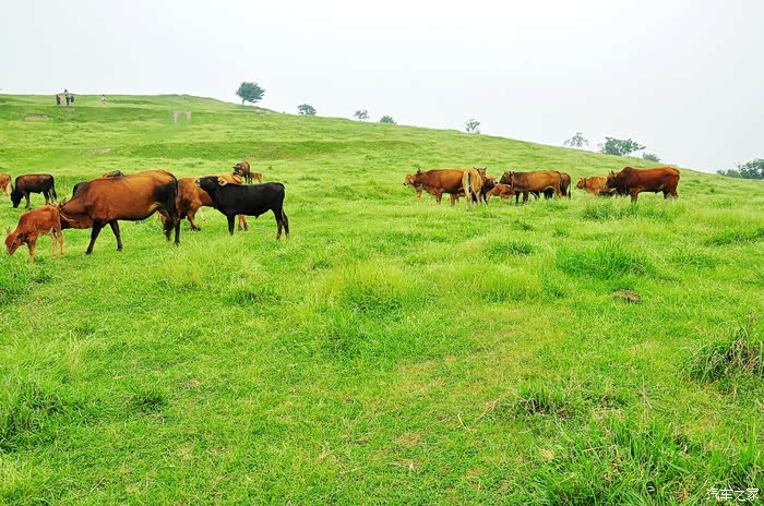 在在这里有平缓的坡,绿色的草像毯子一样细滑,这里有开阔的草地,可以供牛羊马放牧使用。高原上的动物似乎也都是自由自在的,我很少看到有人在旁边扬着鞭子驱赶它们,它们总是很随性的分散在山上的各个地方。也许是因为总是爬山的关系,这里的牛似乎都是四肢比较短的,不太肥硕。都是是放养的,不如家牛那样体态富贵,都比较干净。我们远远地看着它们,他们也无所畏惧地偶尔抬头看看我们。