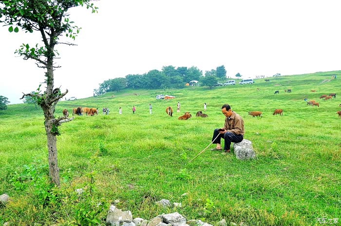 草地散落着紫色、黄色、蓝色等很多色彩小花,牛羊在一旁悠闲地低头啃着牧草。这是现代牧羊人,用手机就可以总览世界风云变幻。我非常羡慕牧羊人,在这样的充满纯净空气,安宁美丽的大自然的环境下,陪伴着毫无敌意的牛羊,心境平和上网遨游,与世无争,悠闲自在,延年益寿啊.其实这里就是一个天然疗养院!