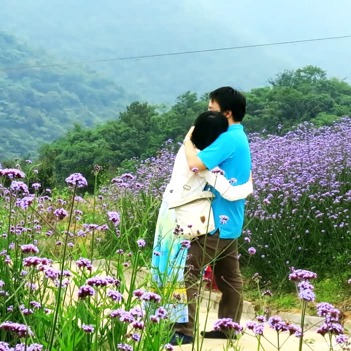 在这薰衣草花海里,他们俩情不自禁,相拥互诉衷肠,这样的场面只有远远的欣赏,不忍心惊扰他们的甜蜜浪漫.
