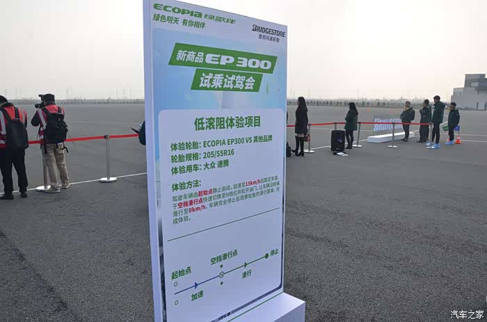 小蓝旗是装备某品牌轮胎车辆滑行到停止的标注点,装配EP300轮胎的车辆轻而易取的越过标注点并绝尘而去。