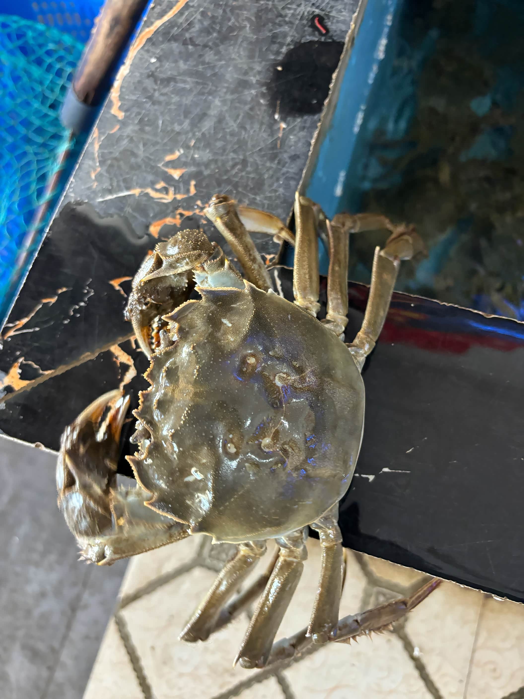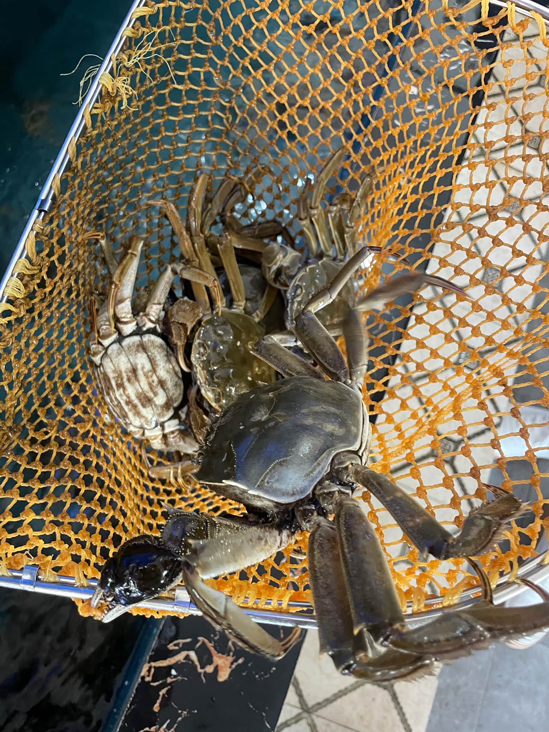 现在的螃蟹质量是最好的,我们会长还帮忙给我们砍价,还给我们分享一下选螃蟹的技巧一定要选那青壳白肚皮的,这样的螃蟹质量比较好,买回去以后放冰箱存活率也比较高。