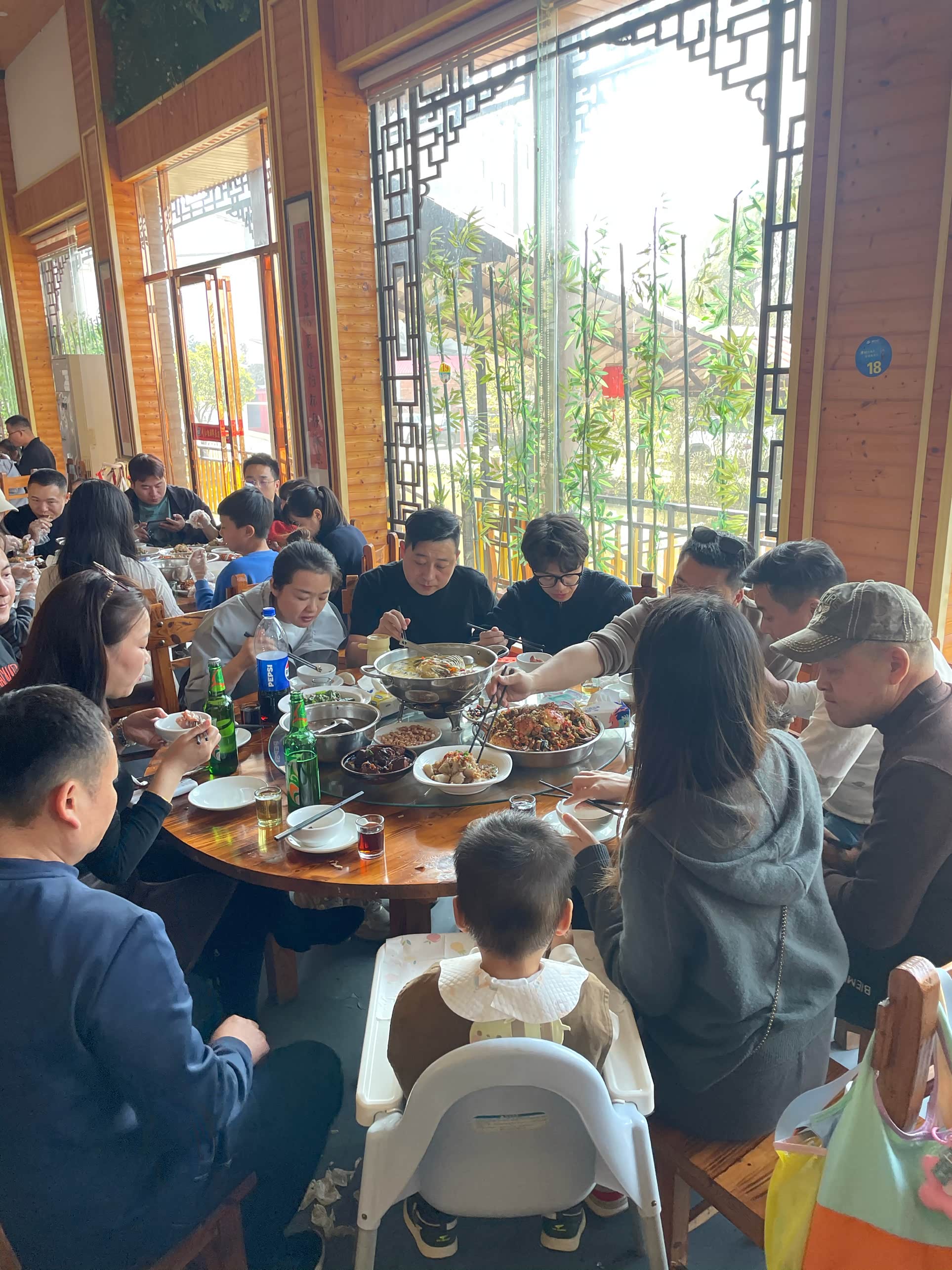 大大小小60多人,挤挤正好5大桌,用会长的话说,把欢声笑语留在贺龙湖畔,把蟹黄吃到肚子里,这个就是我们活动最大的目的!