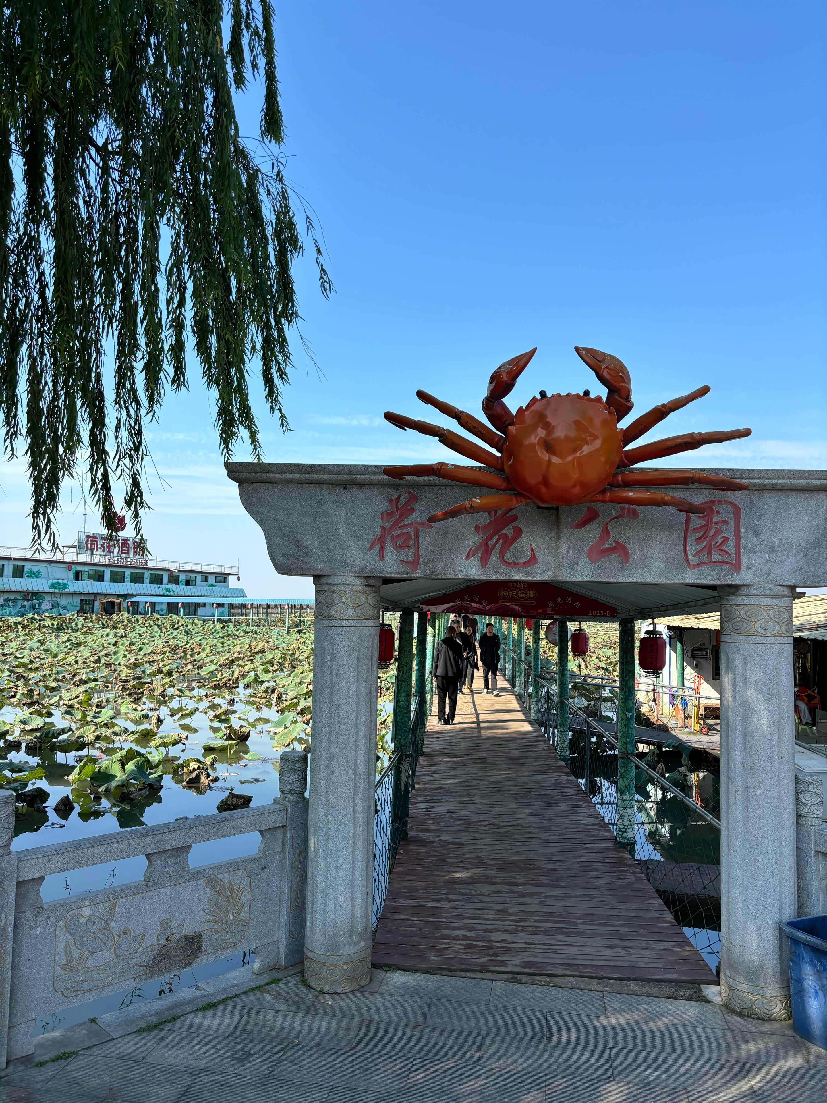 荷花公园标志性的建筑物一眼望去望湖面不到头。