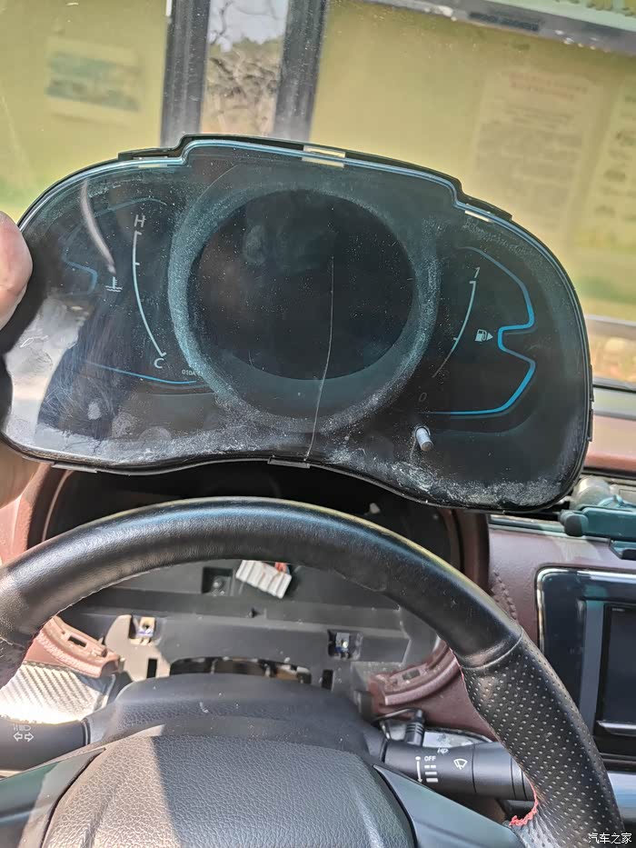 不知道什么时候,也不知道为什么仪表外壳破裂了,闲鱼淘到全新的仪表,到货后自己动手更换,只需要一个十字螺丝刀拆两个固定螺丝,饰板自己徒手轻松拆下,十几分钟完成更换仪表外壳,如果更换仪表公里数对不上,而且怕出故障码,要匹配就麻烦了,仪表拆车件带划痕都卖350,换上的对比过和原装一模一样才不到100块