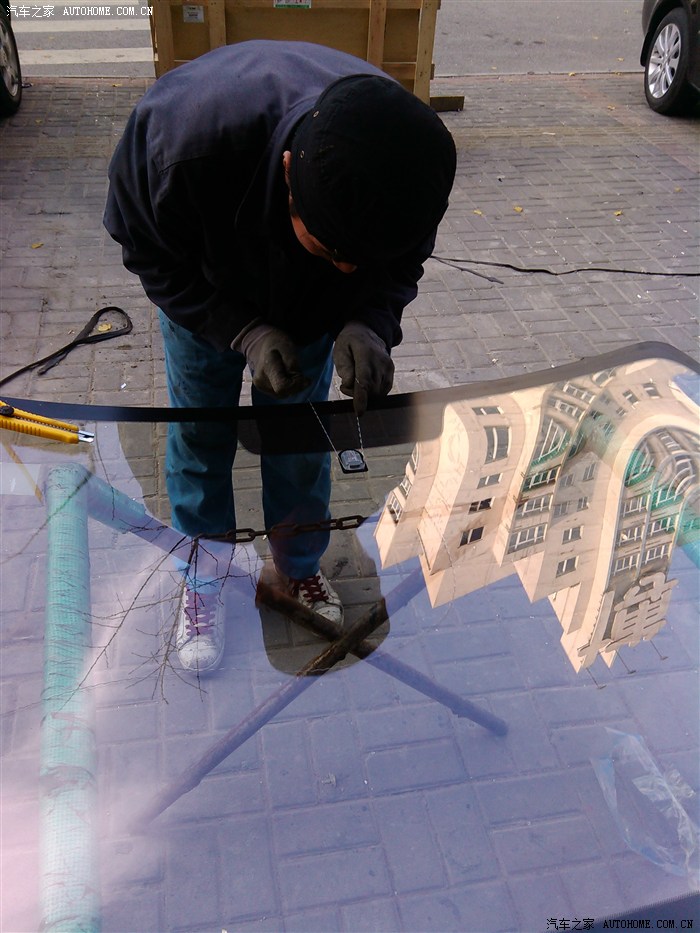 年初的时候车子前挡风玻璃被石子崩了一个小坑,玻璃也没继续开裂,一直凑合着用, 今年的保险马上就要到期了,还没有出过险,有了把前挡玻璃换掉的想法。早就知道福耀有一种镀膜前挡风玻璃( 福耀防晒节能汽车玻璃(镀膜玻璃),高透光、高隔热、低反光。出厂时就已在两层玻璃中间镀了一层膜,省去了事后贴膜的麻烦,车友们可以在网上搜一下),效果非常好,但价格有些高,这几天不怎么忙就打电话给保险公司把玻璃理赔了,没有额外花钱,找保险员说点好话,定损时高点就行了。没说的,镀膜玻璃上身。上图: