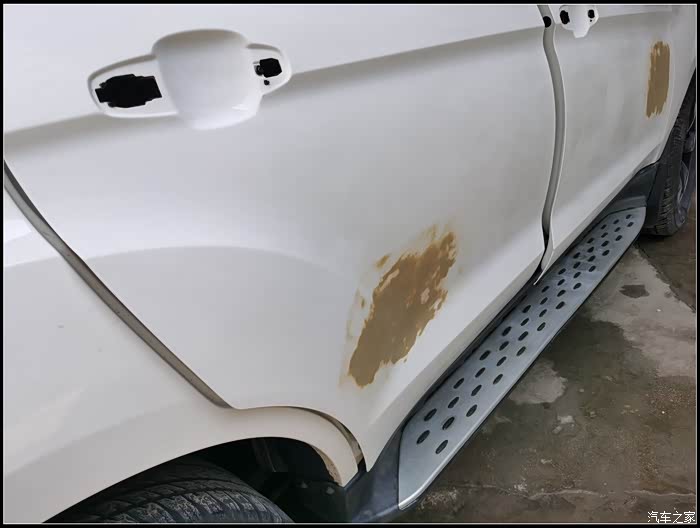 大白萨外观覆盖件的瑕疵总共有6处,左前门擦伤,左后门挂伤,右前叶子板顶部有一个小坑,右前保险杆塑料卡扣断裂,右后门框右上角少许油漆痕迹,尾箱门轻微压痕。这6处全部弄完估计费用不少,考虑到本身就是二手的,捡明显的两处进行了修复,也就左前门擦伤和左后门挂伤,其它的以后再说了。