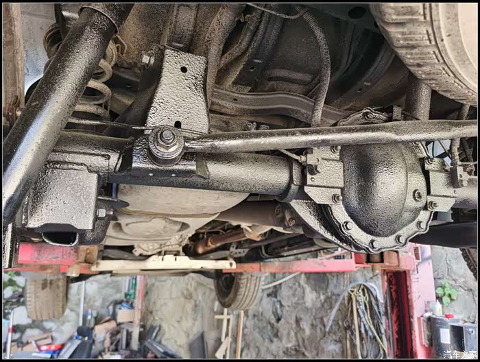大白萨底盘处理前的锈蚀情况,止推杆螺母和垫片全部锈蚀