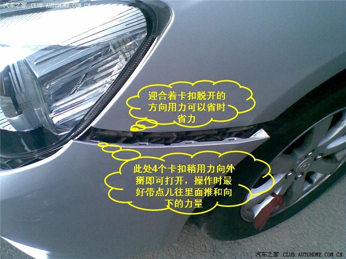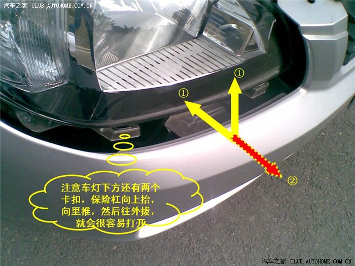 关于换蜗牛喇叭的操作方法:不拆中网只拆部分部分保险杠。。。