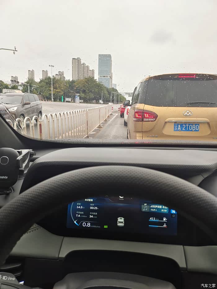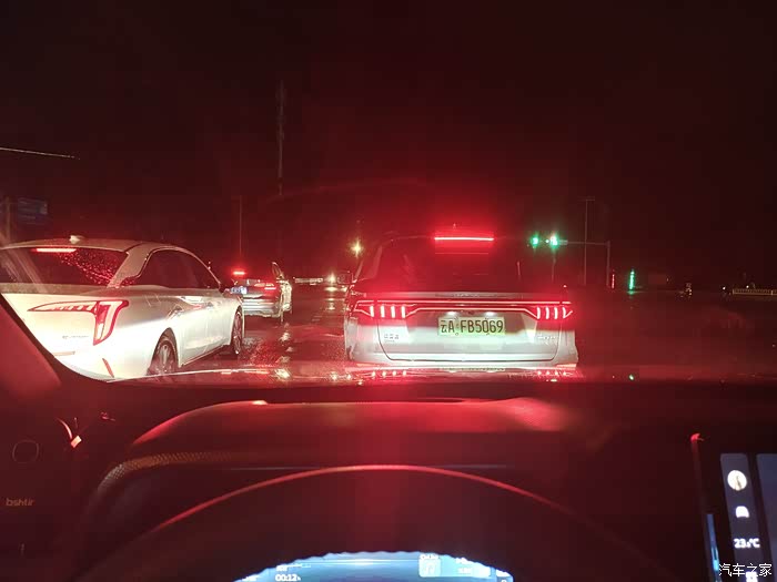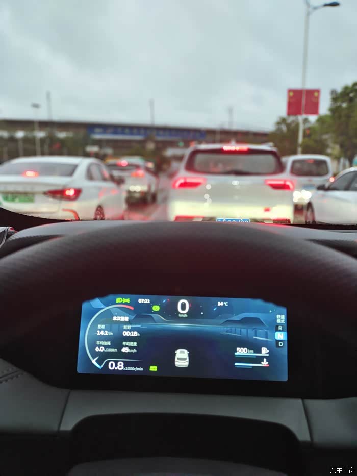 夜晚堵车中,均速20左右,油耗八个多,没拍到表显。
