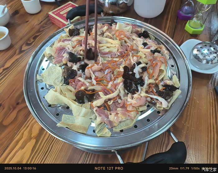 走进店内闻到了弥漫着诱人的香气,我们点了招牌的桑拿鸡,服务员在特制的蒸锅上铺满新鲜的鸡肉片,底下是用多种药材熬制的高汤。短短几分钟,鸡肉便在蒸汽中熟透,鲜嫩多汁,保留了最原始的风味。蘸上店家特制的酱料,入口的瞬间,山行的疲惫仿佛都融化在这美味之中。